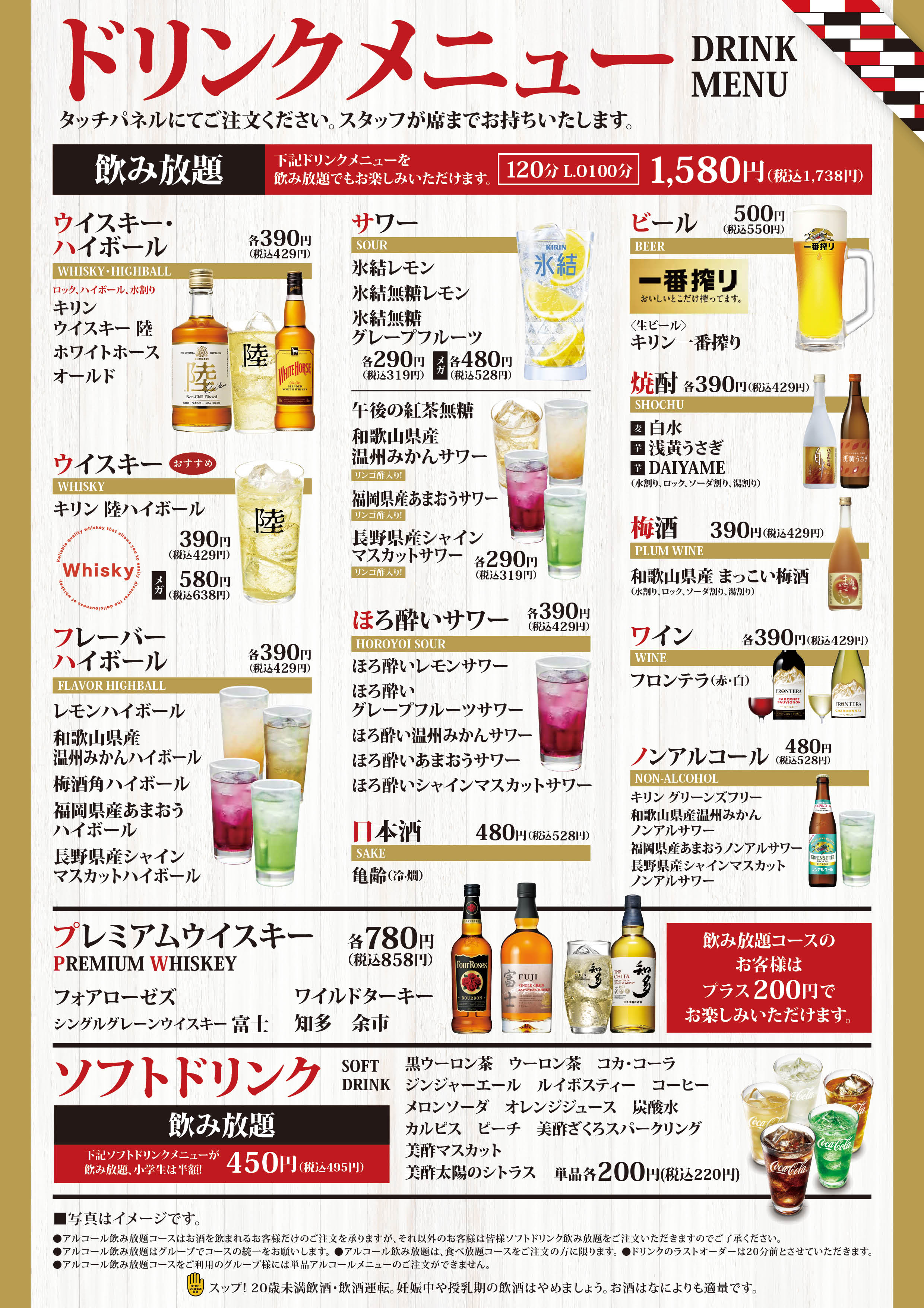 こちらの商品は全てのメニューの中からお1人様1品ご注文いただけます